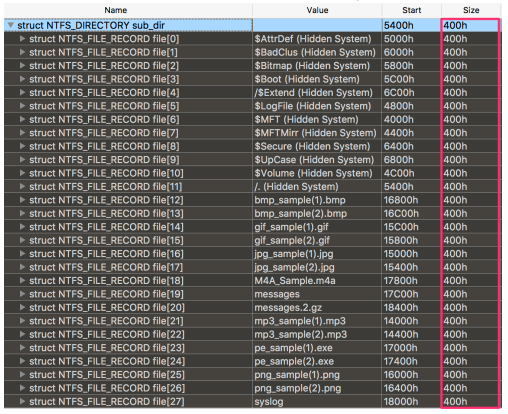 파일들에 대한 다양한 정보들이 포함되어 있으며, 1024 bytes 크기(400h)의 MFT Entry로 이루어져 있다.