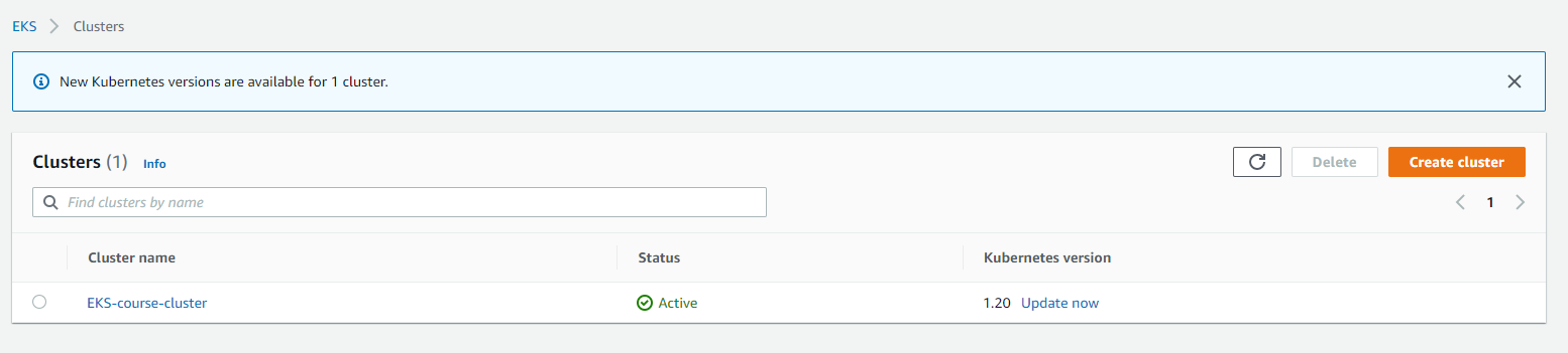 여기까지하면 기본 클러스터 생성 실습은 완료된 것이다.