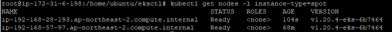 kubectl get nodes -l instance-type=spot