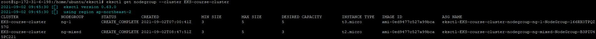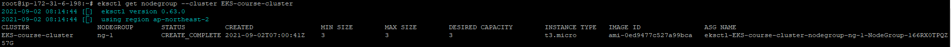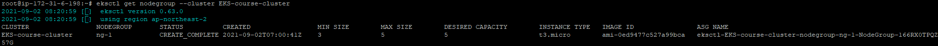 eksctl get nodegroup --cluster EKS-course-cluster