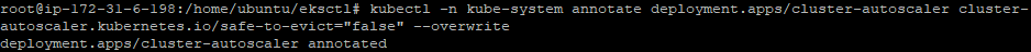 kubectl -n kube-system annotate deployment.apps/cluster-autoscaler cluster-autoscaler.kubernetes.io/safe-to-evict="false" --overwrite