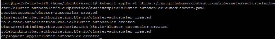 kubectl apply -f https://raw.githubusercontent.com/kubernetes/autoscaler/master/cluster-autoscaler/cloudprovider/aws/examples/cluster-autoscaler-autodiscover.yaml