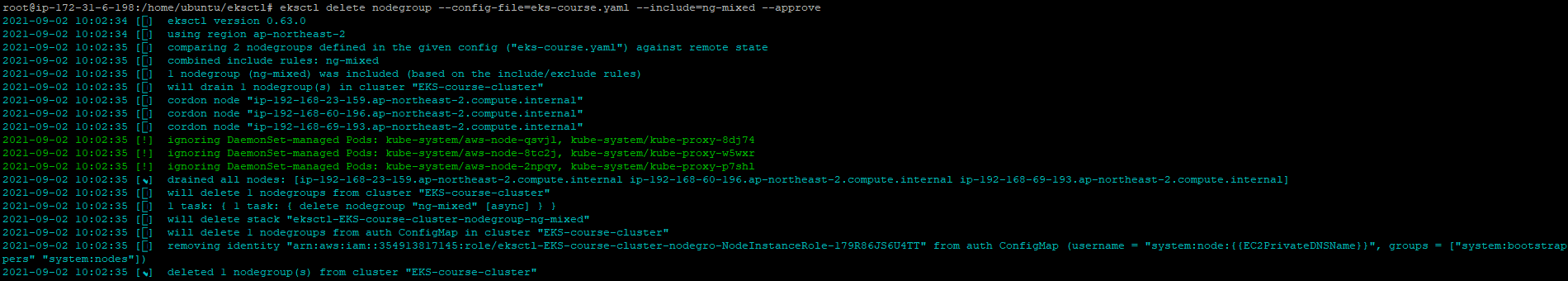 eksctl delete nodegroup --config-file=eks-course.yaml --include=ng-mixed --approve