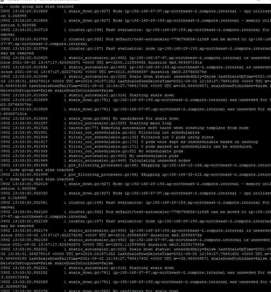 이제 클러스터의 오토스케일 관련 로그를 한번 보자.