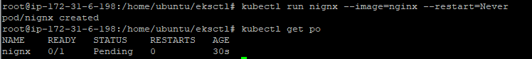 kubectl run nginx --image=nginx --restart=Never