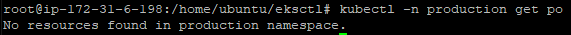 kubectl -n production get po -> production 네임스페이스에서 get 성공