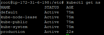 kubectl create namespace production