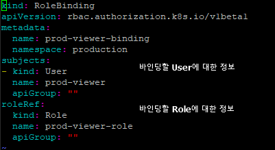 그리고 해당 role을 바인딩할 rolebinding.yaml을 생성하자.