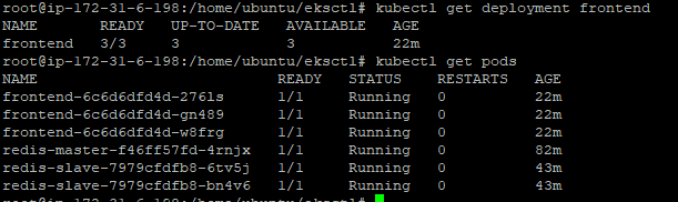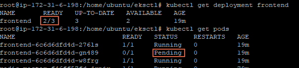 이제 frontend 파드를 스케일링 해보자. 먼저 현재 상태부터 보자.