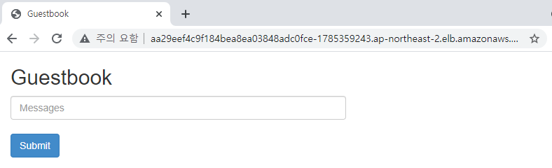 그리고 로드밸런서의 DNS 주소를 브라우저 주소창에 입력해보면 Guestbook 메뉴가 나오는 것을 볼 수 있다.