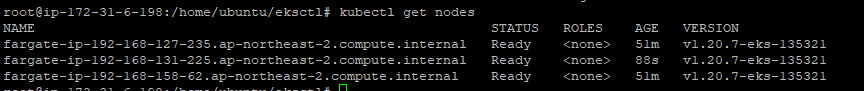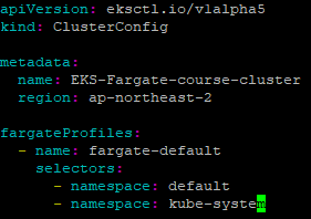 eksctl create cluster -f eks-course-with-fargate.yaml