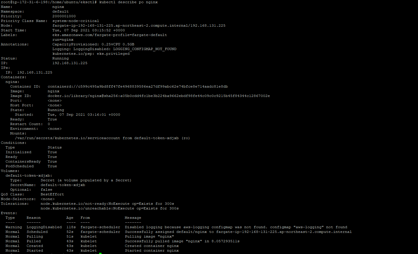 kubectl get nodes 결과와 AWS 콘솔 상 인스턴스를 비교해보면, 서버리스 상태로 노드가 구동되는 것을 확인할 수 있다.