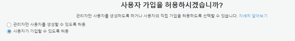 2. 사용자 가입 허용 여부 설정