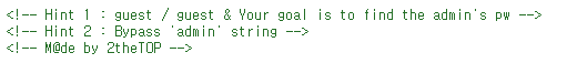 힌트와 문제에서 볼 수 있듯이 admin 은 필터링 된다.