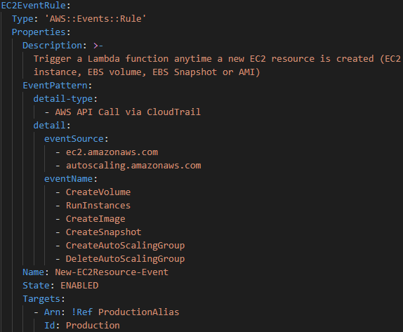 CloudWatch 이벤트를 사용하여 Auto Scaling 또는 수동으로 시작한 EC2 리소스에 자동으로 태그를 지정하는 기능이다. EC2에 적절한 태그를 잘 연결해놓으면 추후 SSM, AWS Inspector 등등 타 서비스를 통한 통합 관리가 용이하므로 시작 시 적절한 태그를 설정하는 것이 중요하다. (추후 RDS나 S3 등 타 리소스에도 동일하게 확장 가능)