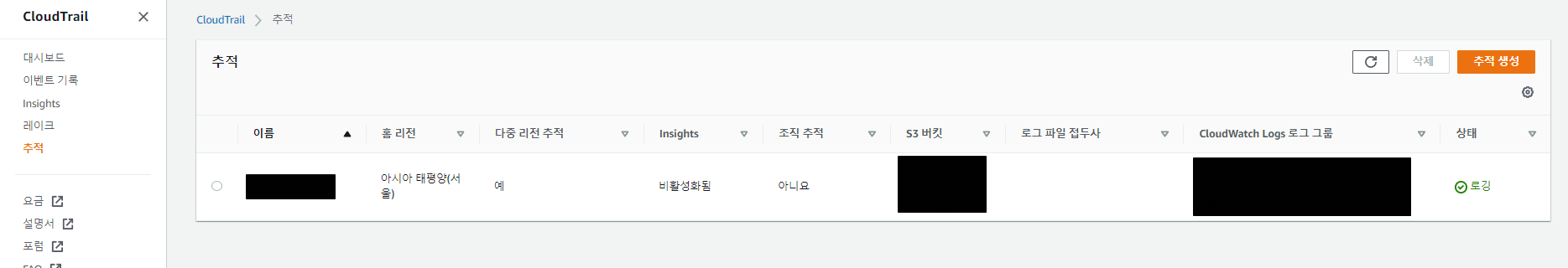 먼저 CloudTrail에서 로그가 저장되는 S3 버킷명을 확인