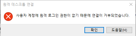 이는 해당 계정에 원격 로그인 권한 기능이 없기 때문인데, 이는 도메인 정책으로 설정 가능할 것으로 보인다. 추후 정책 관련 포스팅 때 함께 다뤄보도록 하자.