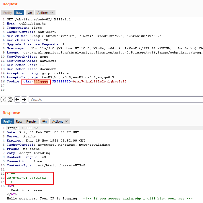 일단 Request의 Cookie 값에 time 라는 낯선 값이 들어가 있는데, 뒤의 숫자가 무엇을 의미하는지 찾아봤다.