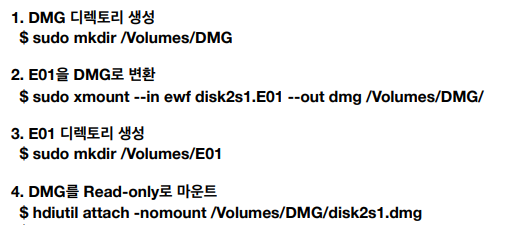 (참고로 FTK Imager로 디스크를 e01 형태로 추출하고 mac에서 read-only로 마운트 방법은 아래 게시글 참고