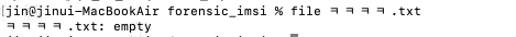 | fls -h -p -r -m '' -z Asia/Seoul /dev/disk2s1 > disk2s1.fls ➡ -h :: Include MD5 checksum hash ➡ -p :: Display full path for each file ➡ -r :: Recurse on directory entries ➡ -m ‘’ :: the actual mount point of the image (여기서 ''는 쌍따옴표 아니고 싱글쿼터 2번) ➡ -z Asia/Seoul :: Time zone of original machine ➡ > disk2s1.fls :: 출력 값을 diusk2s1.fls 로 저장 (system output) |