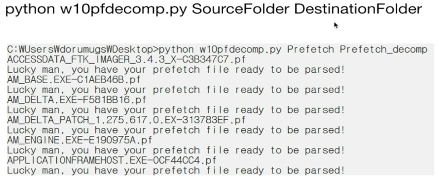 강의에서 저자는 w10pfdecomp.py 파일을 이용하여 MAM 압축을 해제한다. (mac에서 되는지 볼 것)