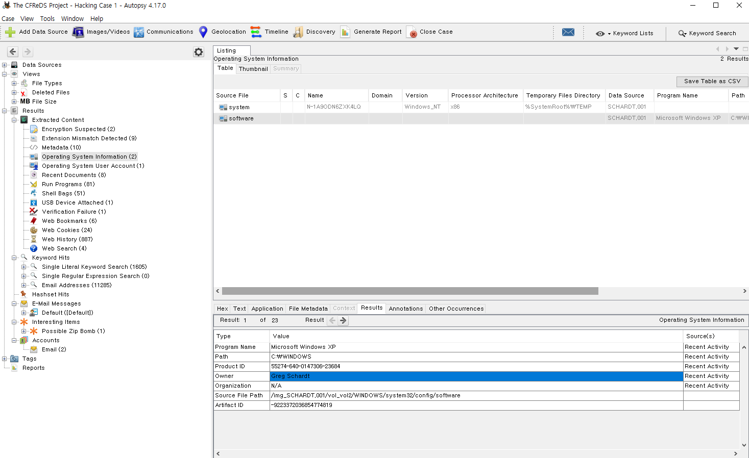 The CFReDS Project - Hacking Case 5번 (Registerd Owner) with autopsy