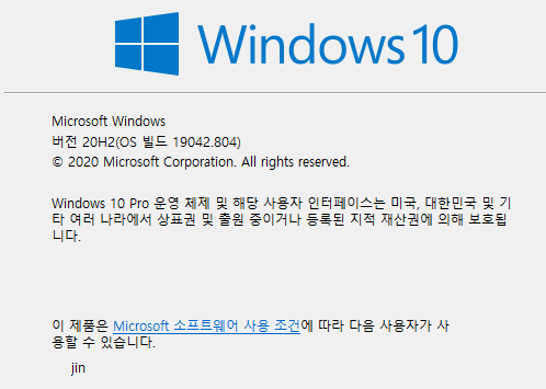 등록 된 소유자라.. 컴퓨터 설치 시 입력한 사용자명을 말하며, 윈도우 실행 창에서 아래 정보를 입력하면 나오는 정보이다. (바로 아래 캡쳐는 필자의 PC 화면이다.)