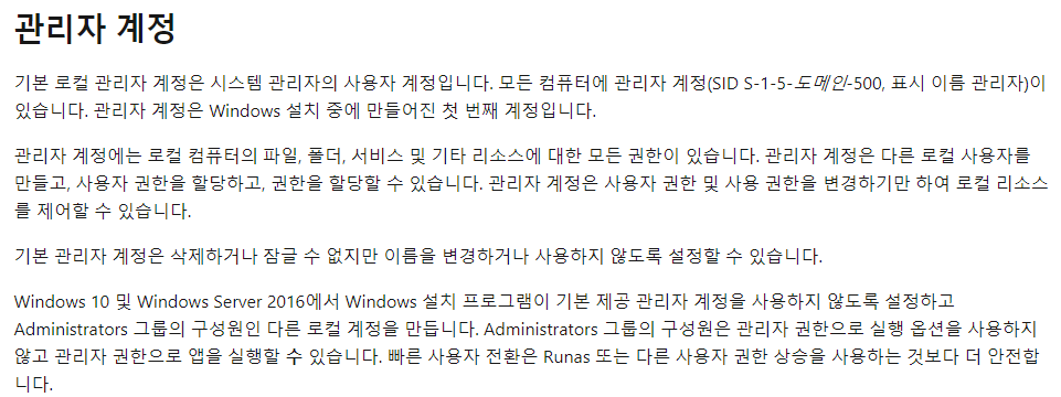그리고 SID (보안식별자)는 MS 공식 문서를 보자.