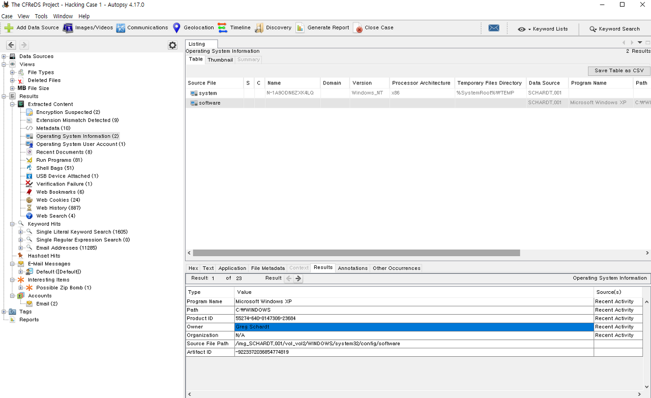 The CFReDS Project - Hacking Case 6번 (사용자 계정, SAM, SID) with autopsy 본문