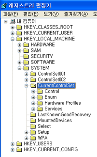 SYSTEM에서 또 한가지 중요하게 살펴볼 것이 있는데 바로 CurrentControlSet 키 이다.