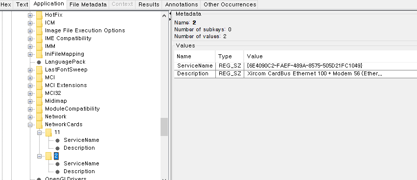 - HKEY_LOCAL_MACHINE\SOFTWARE\Microsoft\Windows NT\CurrentVersion\NetworkCards