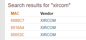 일반적으로 mac address의 앞쪽은 벤더사들의 고유 번호이다. 구글링해보면 0010a4는 xircom에서 발생한 것임을 쉽게 알 수 있다.
