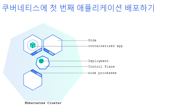 일단 쿠버네티스 클러스터를 구동시키면, 그 위에 컨테이너화된 애플리케이션을 배포할 수 있다. 그러기 위해서, 쿠버네티스 디플로이먼트 설정을 만들어야 한다. 디플로이먼트는 쿠버네티스가 애플리케이션의 인스턴스를 어떻게 생성하고 업데이트해야 하는지를 지시한다. 디플로이먼트가 만들어지면, 쿠버네티스 컨트롤 플레인이 해당 디플로이먼트에 포함된 애플리케이션 인스턴스가 클러스터의 개별 노드에서 실행되도록 스케줄한다
