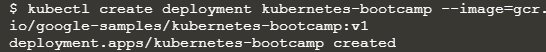 kubectl create deployment kubernetes-bootcamp --image=gcr.io/google-samples/kubernetes-bootcamp:v1