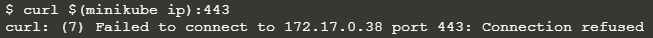 외부 접속용으로는 8443 포트가 TargetPort로 열려있다. 그럼 Curl을 이용해 한번 8443 포트로 연결해보자.